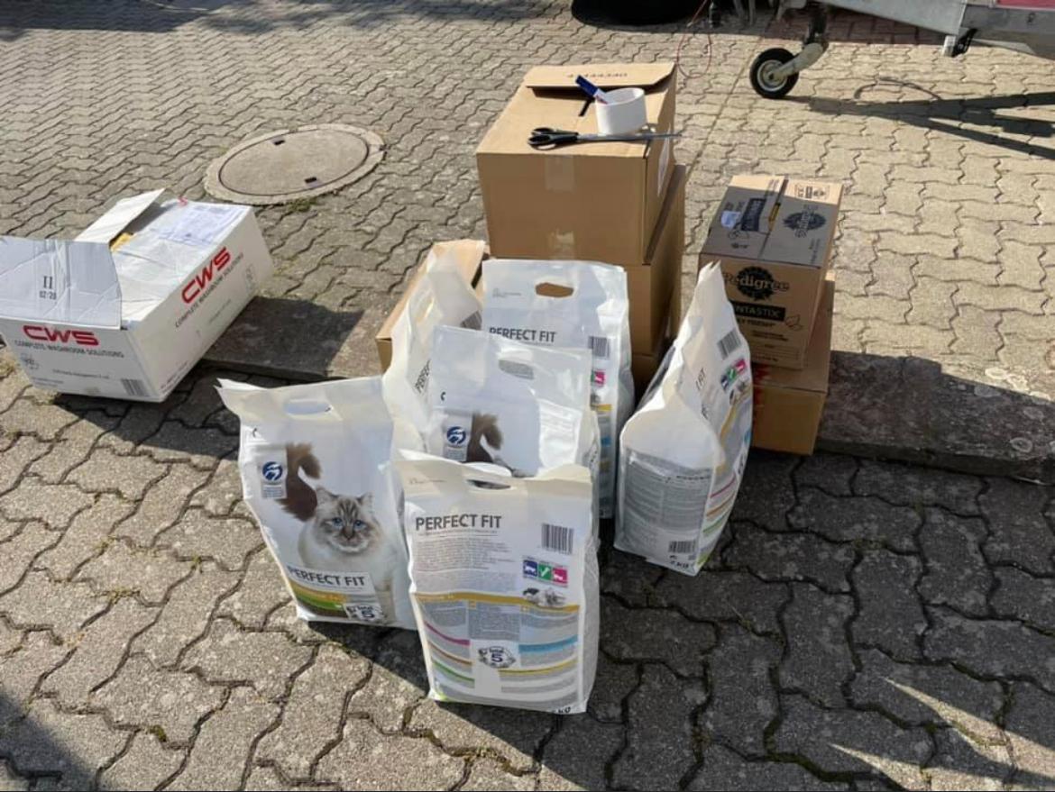 Wir haben uns über eine riesengroße Spende Spezialfutter für Snow (Katze die an FIV erkrankt ist) sehr freuen dürfen und spezielle Halsbänder für die Hunde gegen die Mücken die Leishmainose übertragen.