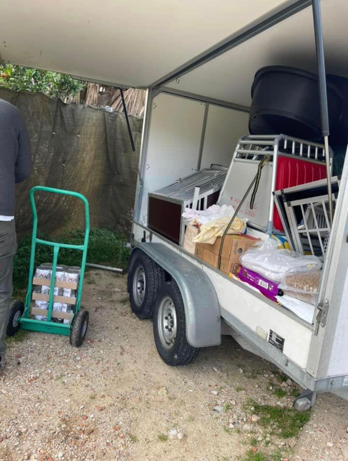 Mit dabei waren natürlich wieder Trocken- und Nassfutter für die Tiere, die Spezialhalsbänder für die Hunde, Medikamente, große Hundetransportboxen und ein Tisch für das Refugium (Tierheim). Der Tisch kam bitternötig. Als wir den alten gegen die neuen Tisch austauschen wollten, ist er im gleichen Moment auseinandergefallen.