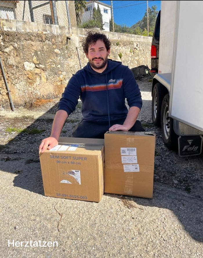Axel von HERZTATZEN wollte am 28.03.2022 zusammen mit einer großen Unterstützerin von Borja den langen Weg nach Gandia antreten. Leider musste sie krankheitsbedingt am Montag früh absagen. Unser Déjà-vu vom Februar. Der Hänger war beladen - was nun? Also ist Axel von HERZTATZEN Montag Abend alleine losgefahren.